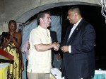 Brian Daley of Geographic Consulting is congratulated by Governor John Dejongh of the US Virgin Islands after the company was awarded the 2011 Small Business of the Year Award