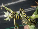 A pair of Monarch caterpillars (Danaus plexippus)